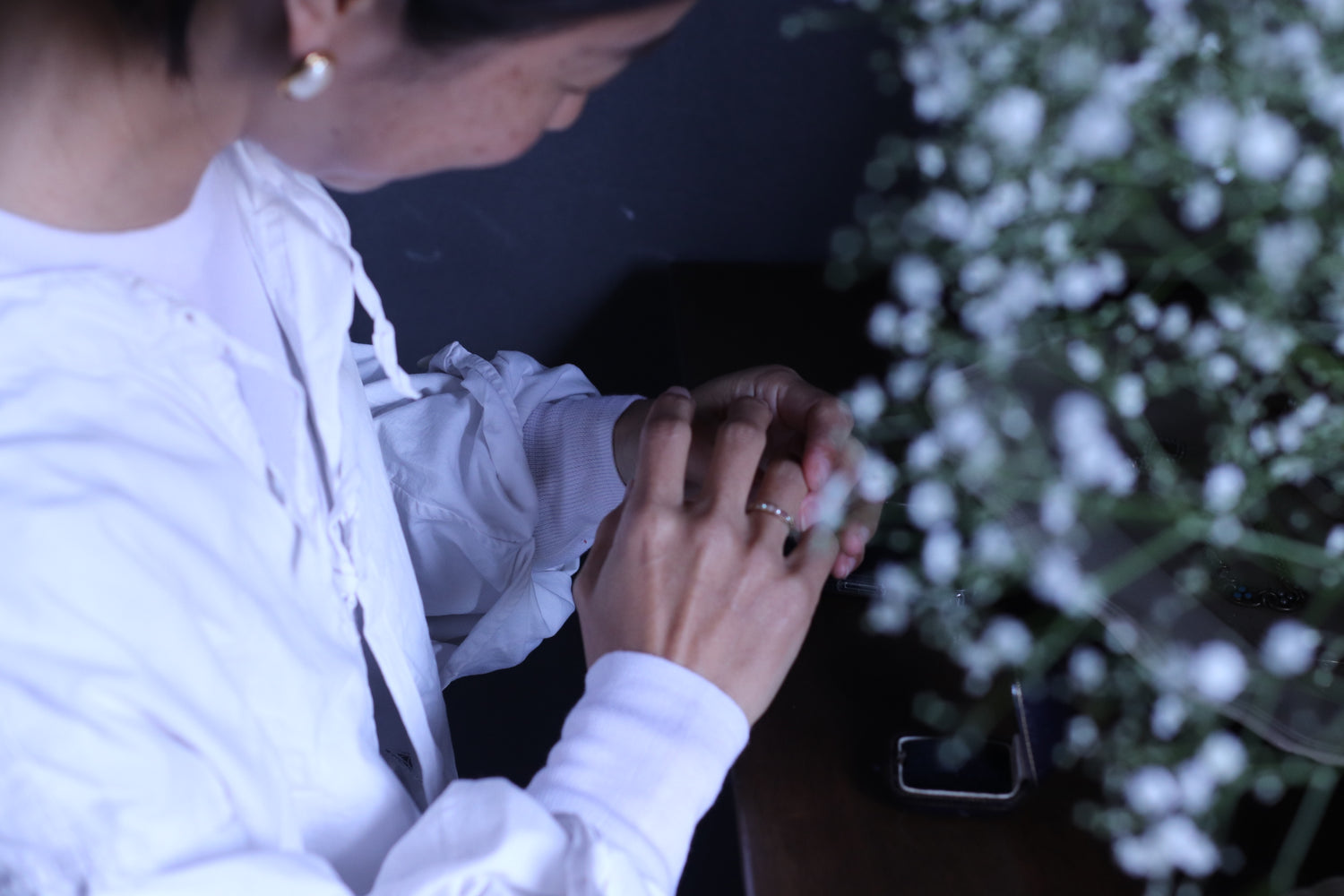 エナメルで施された中心に、柔らかなパールの存在が、上品な美しさを放っています。